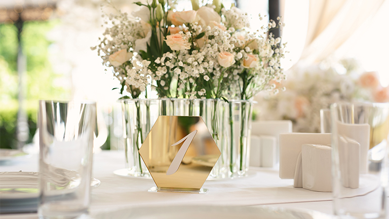 Asegúrese de que el tamaño de los soportes para los números de la mesa sea apropiado para la mesa y visible desde varios ángulos. Pasar por alto este aspecto puede generar confusión entre los invitados.