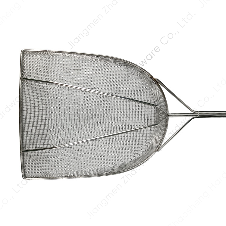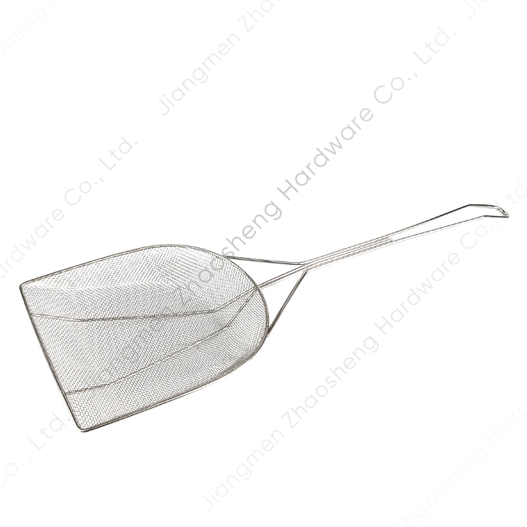 La espumadera para freír con cuchara de filtro de alimentos con pala para chicharrones de acero inoxidable está diseñada para tratar los chicharrones, mantiene la freidora libre de residuos y el aceite fresco.
