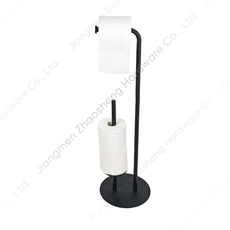 Recién llegado, soporte para papel higiénico independiente con recubrimiento en polvo negro, si está buscando un soporte para toallas de papel de alta calidad, diseño elegante y excelente rendimiento para suministrar a sus clientes, entonces este soporte para toallas de papel definitivamente merece su atención.