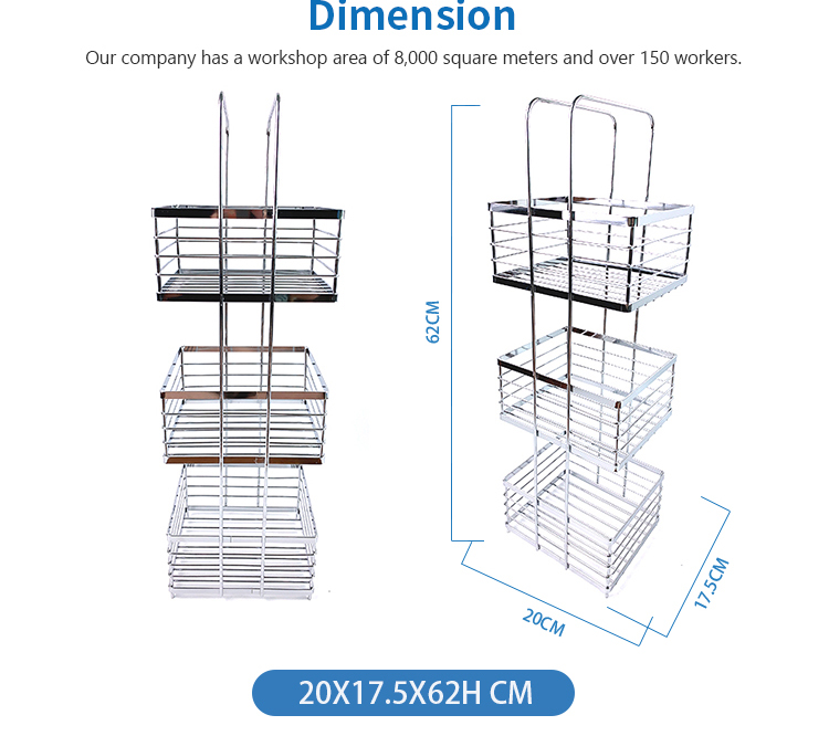 Producido con la última tecnología, gran oferta, suministro de China, estantes simples, esquina decorativa de almacenamiento de 3 niveles Estante de baño carrito de ducha ocupa el primer lugar en la industria. El carrito de ducha del estante del baño de la esquina del almacenamiento decorativo de 3 niveles de los estantes simples de la oferta caliente de China está disponible en una variada gama de especificaciones. En comparación con los tradicionales, satisface mejor las demandas del mercado.